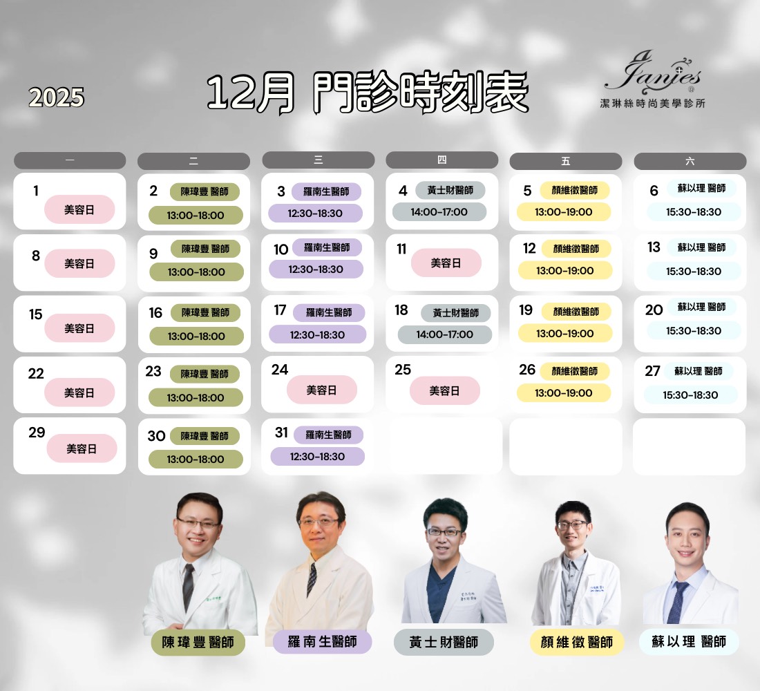 潔琳絲 10月醫師門診表 快來預約專屬的美麗蛻變吧